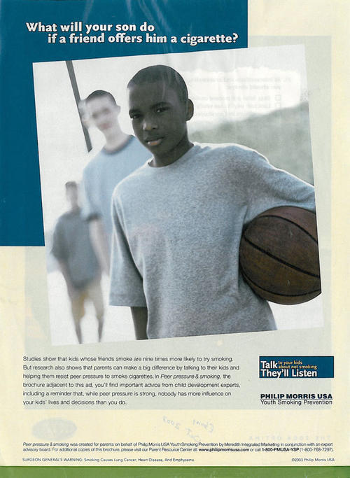 Ad-magazine/newspaper Anti-tobacco Industry Public Relations Special Populations-African American Special Populations-Youth