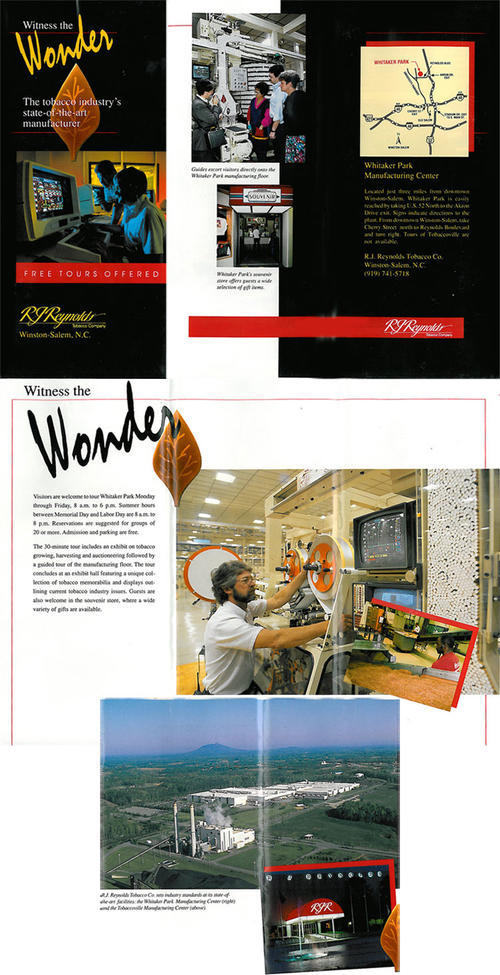 Brochure in promotion of RJ Reynolds Tobacco Company. "Witness the Wonder of the Tobacco Industry's State-of-the-Art Manufacturer."