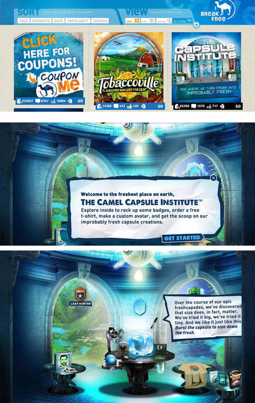 Web pages recorded in September 2011 from a feature on Camel's brand website, Camel.com, called "The Camel Capsule Institute". The feature promotes the "freshness" associated with the brand's menthol styles and with the capsule "technology" found in the Camel Crush line extensions. The Camel Crush products allow smokers to switch from smoking a non-menthol to a menthol cigarette by squeezing the filter area of the cigarette and crushing an embedded flavoring capsule.