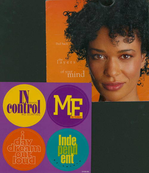 Direct Mail coupons with stickers; African American Women's photo on cover with "Peel back the layers of your mind". Post it-Note included. Survey included.