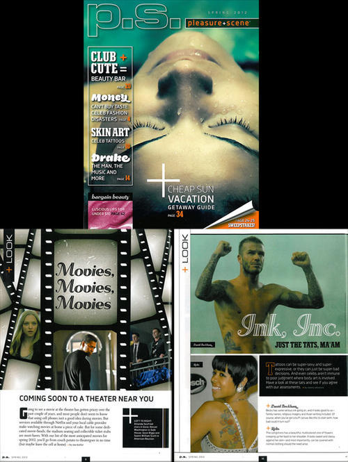 Spring 2012 issue of P.S, a controlled circulation magazine produced by Newport. The issue includes reviews of celebrity fashion and tattoo trends, new movies, bands, and destination locations, as well as numerous ads for Newport cigarettes and sweepstakes promotions.