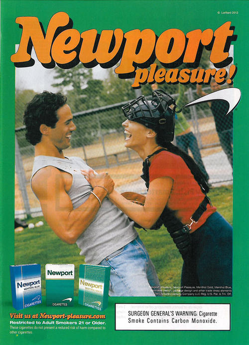 Newport ad featuring an image of a couple laughing together on a baseball field.