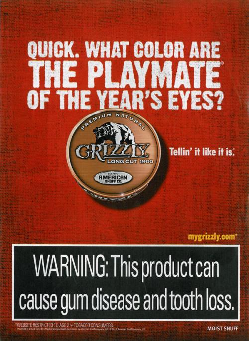 Ad in promotion of the Long Cut 1900 product style. Text: Quick. What color are the playmate of the year's eyes?"