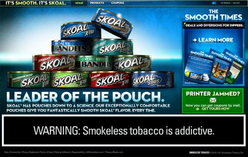 Page from Skoal's brand website recorded in August 2012, promoting Skoal as the "Leader of the Pouch."