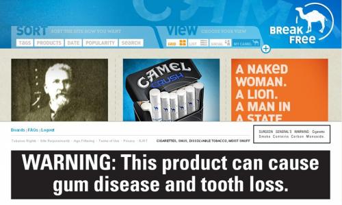 Image captured from the Camel homepage in June 2010 promoting the Camel Crush style of cigarettes.