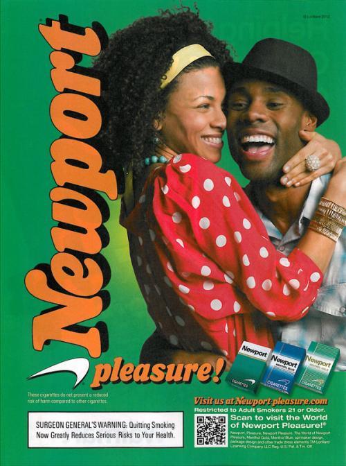 Green Newport ad with Orange writing. Includes QR code that can be scanned for more information.