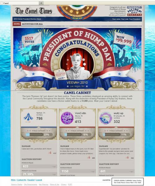 sweepstakes associated with Camel's 99th Birthday Humptennial promotion. The