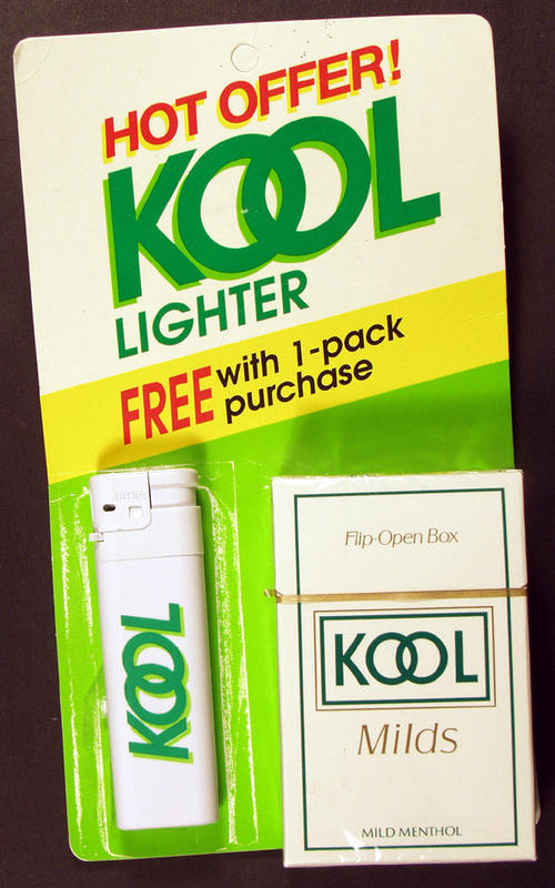 Hot Offer! Kool lighter free with 1 pack purchase of Kool Milds. White lighter with green text on side.
