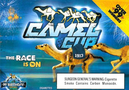 Direct mail piece received from Camel in November 2012 promoting the 99th Birthday Humptennial, the Camel Cup sweepstakes and several products. Text: "Camel Cup: The race is on. Capture the glory."