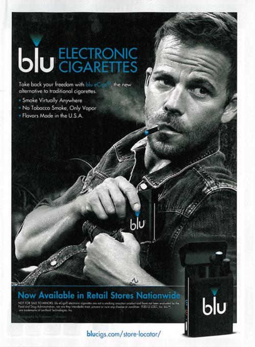 Blu ad with Stephen Dorff advertizing product in retail stores nation wide.