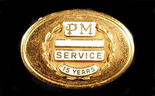 Piece of Tie clip with gold logo of White enamel; "PM service 15 years".