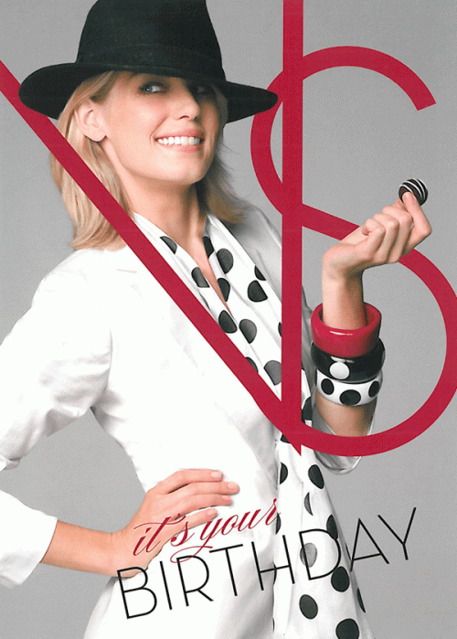 Direct mail piece from Virginia Slims wishing the receiver a Happy Birthday, and delivering coupons. The piece features an image of a young woman holding a piece of chocolate, and ties into the theme of sweet rewards. Text: "Have your chocolate and eat it too. And enjoy these sweet Birthday wishes from your friends at Virginia Slims."