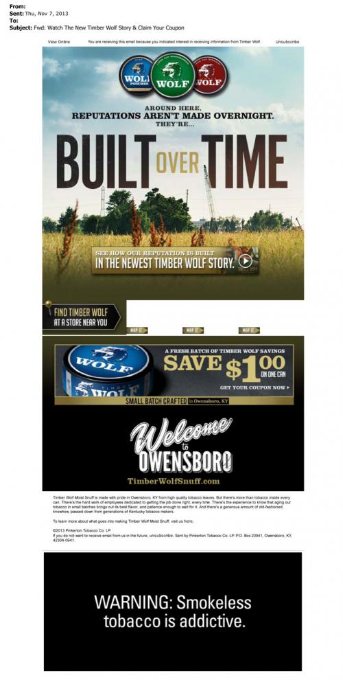Timber Wolf in November 2013 inviting the receiver to the brand's