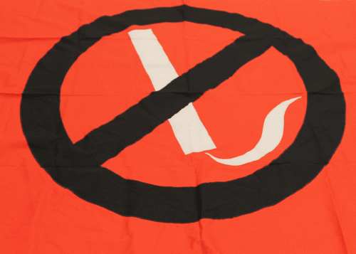 Large red flag with the universal "No Smoking" symbol.