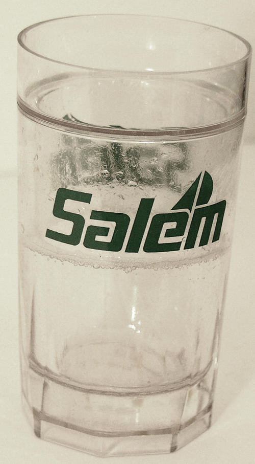 Salem freezer cup has liquid inside- logo on front and back.