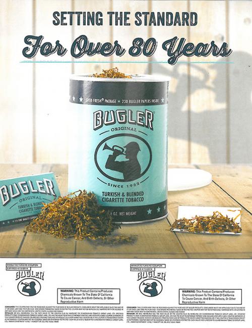 Direct mail from Bugler received in March 2014 addressed to the receiver wishing them a happy birthday and delivering two coupons. On the other side of the letter is an image of Bugler's product with text: "Setting the Standard for Over 80 Years." The piece also includes a survey for a friend to fill out.