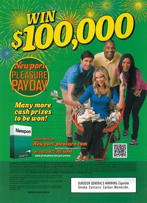 Newport promoting their Newport Pleasure Payday sweepstakes. Text: "Win