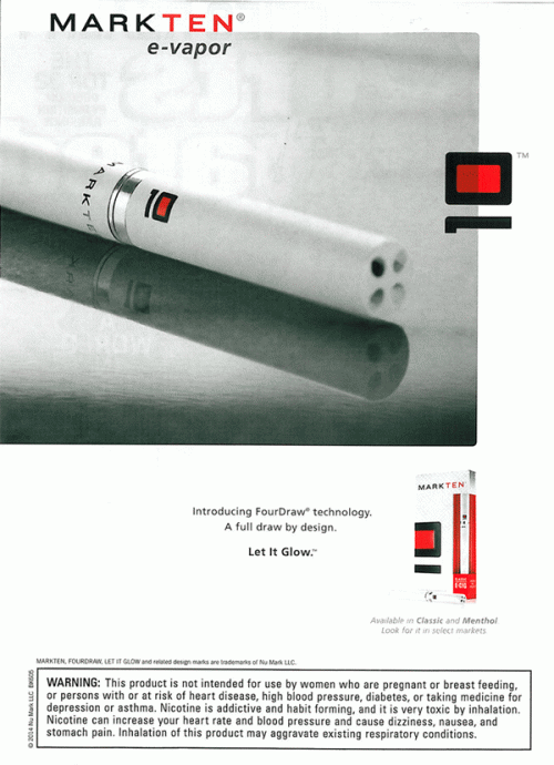 MarkTen promoting their new e-vapor with FourDraw technology. Text: