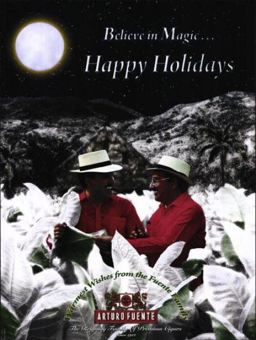 Premium cigar company Arturo Fuente wishes everyone a Happy Holidays in this magazine ad.