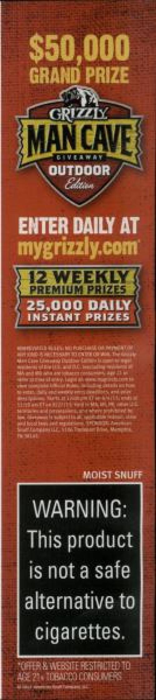 Grizzly "Man Cave Giveaway Outdoor edition" ad promoting their premium sweepstakes. Text: "$50,000 Grand prize. Enter daily at mygrizzly.com"