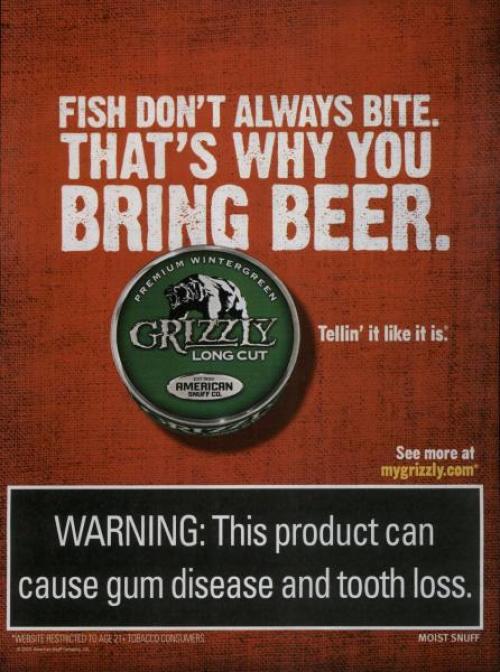 "Tellin' it like it is" ad from Grizzly promoting their Premium Wintergreen Long Cut product.