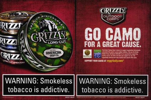 "Tellin' it like it is" ad from Grizzly promoting their Long Cut products and the Grizzly Outdoor Corp's mission to supporting organizations that protect the "country's great outdoor traditions".