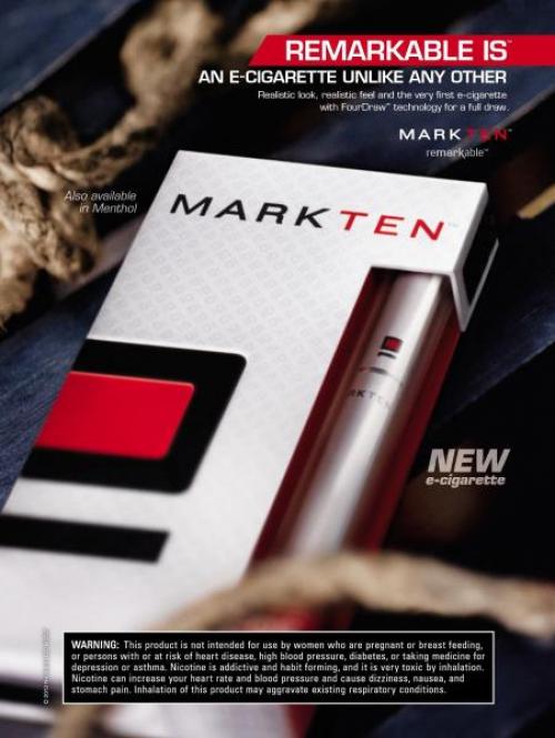 MarkTen promoting their new e-vapor with FourDraw technology. Text: "Remarkable Is an e-cigarette unlike any other."