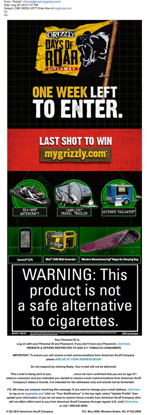 E-mail Smokeless Tobacco Sweepstakes