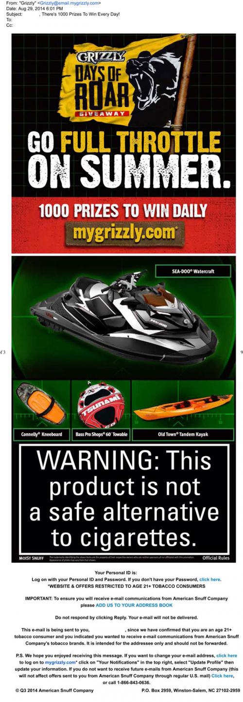 E-mail Smokeless Tobacco Sweepstakes