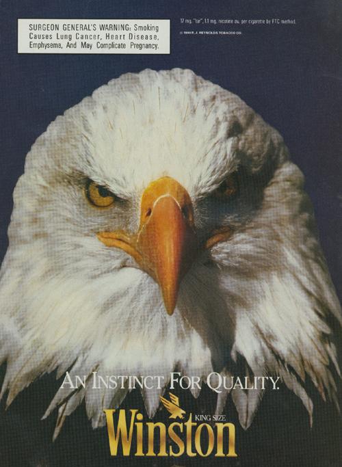 Ad for Winston found in People magazine November 5, 1990. Image is of the head of an eagle. "An Instinct for Quality."