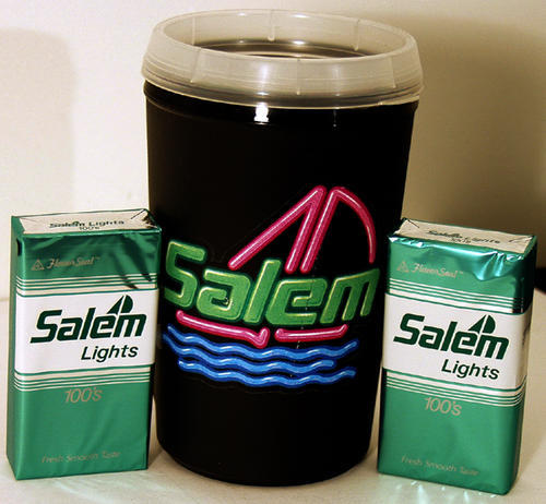 Blue Salem thermos with 2 packs of Salem Light 100's inside.