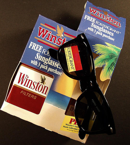 Free sunglasses with 3 pack purchases. One pack is missing the cigarettes.