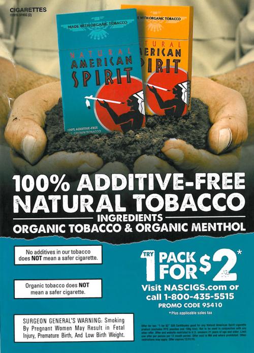 Perhaps a misprint, this American Spirit ad variation combines images of their "full-bodied" and "mellow" products with the usual ad copy for their menthol products.
