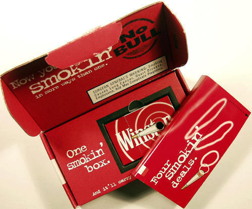 Coupons and details on how to use the "smoke box". Smoke box enclosed that will also hold cigarettes.